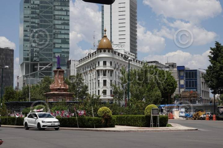 CIUDAD DE MÉXICO, 12JULIO2023.- Trabajadores de obra colocan varillas en el pedestal donde será colocada la escultura de La joven de Amajac, a un costado de la Glorieta de las Mujeres que Luchan en Avenida Reforma. FOTO: GRACIELA LÓPEZ /CUARTOSCURO.COM
