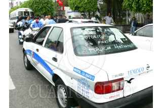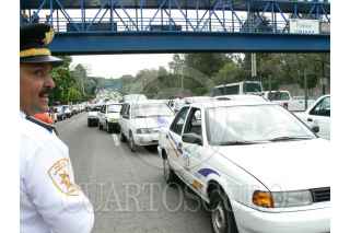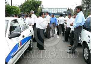 CUERNAVACA.MORELOS27ABRIL2007.-Taxistas de distintas radio lineas se manifestaron ante la policia metropolitana acusando a los elementos de abuso de autoridad. Ademas causaron problemas de transito en la calle Heroico Colegio Militar, principal entrada a la ciudad. FOTO PATRICIA MORALES/CUARTOSCURO.COM