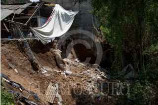 CIUDAD DE MÉXICO, 12JULIO2023.- Se registró un deslave de tierra en la parte trasera de una comercializadora de materiales en la colonia Huayatla de la alcaldoa Magdalena Contreras esto debido a las intensas lluvias y fuertes vientos registrados en la capital del país. FOTO: ROGELIO MORALES /CUARTOSCURO.COM