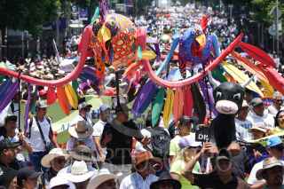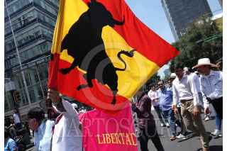 CIUDAD DE MÉXICO, 13JULIO2023.- Organizaciones de criadores de toros y aves de combate marcharon del Ángel de la Independencia al Zócalo para exigir un cese a la prohibición por parte de las autoridades para continuar con los espectáculos de corridas de toros y peleas de gallos. Mencionan que este acto deja sin entretenimiento y sustento a miles de personas a lo largo del país y que es un acto contra sus tradiciones. FOTO: GALO CAÑAS/CUARTOSCURO.COM