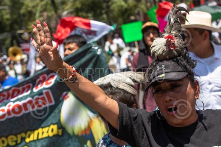 CIUDAD DE MÉXICO, 13JULIO2023.- Afiliados a la Selección Nacional de Criaderos de Aves de Combate y de la Unión Nacional de Avicultores marcharon del Ángel de la Independencia al Congreso de la Ciudad de México esto contra las iniciativas de una ley que busca prohibir el uso de animales en eventos tradicionales mexicanos. Los galleros señalaron que son miles de familias las que dependen de esta actividad económica. Al contingente se unieron simpatizantes de la tauromaquia, charrería y jaripeo. FOTO: MOISÉS PABLO/CUARTOSCURO.COM
