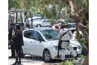 CHICONAUTLA, ESTADO DE MÉXICO, 13JULIO2023.- Fueron asesinados a balazos un hombre y una mujer, quienes viajaban en un automóvil blanco, dos hombres en moto les dieron alcance y les dispararon a quemarropa. Trascendió que eran abogados y venían de los juzgados del penal de Chiconautla. FOTO: ROGELIO MORALES/CUARTOSCURO.COM