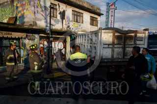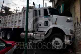 CIUDAD DE MÉXICO, 13JULIO2023.- Un camión de carga que transportaba tierra chocó contra una casa en la Avenida San Bernabe de la alcaldía Magdalena Contreras. Al lugar llegaron bomberos de la ciudad y se destaca que no se reportaron personas lesionadas de gravedad. FOTO: ROGELIO MORALES /CUARTOSCURO.COM
