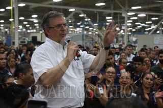 TIJUANA BAJA CALIFORNIA, 14JULIO2023. Marcelo Ebrad presenta su plan de seguridad A.N.G.E.L en Tijuana. El aspirante a la Coordinación Nacional por la defensa de la 4T, Marcelo Ebrad, visito la fábrica de Avery Porductions Corporación en Tijuana y entabló diálogo con los trabajadores para escuchar sus problemáticas.Durante la asamblea informativa, el ex secretario de relaciones exteriores, manifestó que se enfocara en dar mayor atención a combatir la violencia y la inseguridad por medio del programa A.N.G.E.L (Avanzadas Normas de Geolocalización y Seguridad). Dicho programa se basa en el uso de las nuevas tecnologías para combatir la inseguridad en el país. Por último, mencionó que el tema del fentanilo es una asunto que se tiene que trabajar de forma binacional, por un lado Estados Unidos debe regular la exportación de armas a México y por nuestra parte vigilar el cruce fronterizo. KAREN CASTAÑEDA/CUARTOSCURO.COM