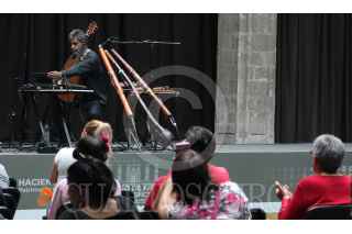 CIUDAD DE MÉXICO, 15JULIO2023.- el Museo de Arte de la SHCP, Antiguo Palacio del Arzobispado el músico Ángel Covarrubias presentó su concierto sonata prehispánica, los capitalinos asistieron a disfrutar de este concierto. Covarrubias Project Es una propuesta basada en la difusión de Instrumentos Prehispánicos que se emplean en ceremonias, rituales y ofrendas mezclados con música electrónica. FOTO: VALERIA OLIVARES/CUARTOSCURO.COM