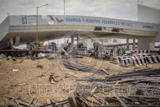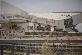TIJUANA BAJA CALIFORNIA, 15JULIO2023.- Caseta de Cobro El Hongo Colapsa Tras Choque y un hombre muere en el lugar Un choque de un trailer contra la caseta de cobro Capufe, El Hongo, causó el colapso de la estructura. El saldo del incidente fue de una persona sin vida y al menos 7 personas con lesiones, que fueron atendidas en el lugar. De acuerdo a información de testigos, el trailer se quedó sin frenos e impacto en la estructura, causando su colapso y la muerte del conductor. Actualmente la ruta se encuentra totalmente cerrada y se está desviando el tráfico hacia la carretera libre. KAREN CASTAÑEDA/CUARTOSCURO.COM