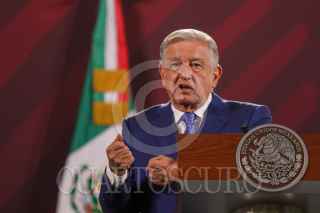 CIUDAD DE MÉXICO, 17JULIO2023.- Andrés Manuel López Obrador, Presidente de México, encabezó la mañanera en Palacio Nacional, en dónde si informo de los avances del Tren Maya FOTO: MOISÉS PABLO/CUARTOSCURO.COM