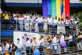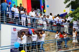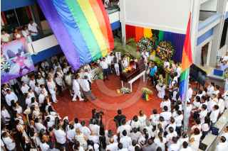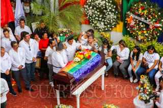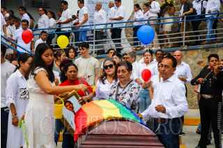 ACAPULCO, GUERRERO, 17JULIO2023.- Familiares y amigos, despidieron con un homenaje al jefe del Departamento de Diversidad Sexual de la Universidad Autónoma de Guerrero, Ulises Salvador Nava Juárez, quién el sábado pasado fuera asesinado a balazos, en la Ciudad de Aguascalientes, al termino de un foro en el que participaba. FOTO: CARLOS CARBAJAL/CUARTOSCURO.COM