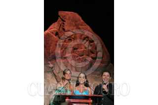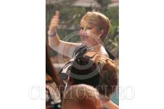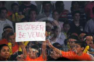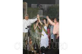 VILLAHERMOSA, TABASCO, 28ABRIL2007.- Las porras de la representante del municipio de Nacajuca muestran una cartulina con la leyenda “El gober se vendió”. FOTO: MARCO POLO GUZMÁN HERNÁNDEZ.