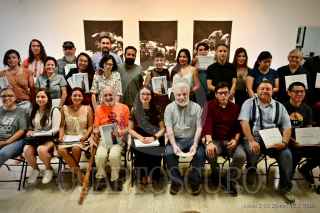 LA PAZ, BAJA CALIFORNIA SUR,18JULIO2023.- La revista Cuartoscuro publicó a más de 50 fotógrafos, originarios o residentes, de Baja California Sur en el número 177 correspondiente a (junio-julio-agosto 2023) con el objetivo de descentralizar la fotografía y promover el trabajo de autores mexicanos. Victor Caballero, director del Instituto Sudcaliforniano de Cultura, quien ha sido parte importante para concretar este gran portafolio de 70 fotografías, entregó a los participantes un reconocimiento y ejemplares de la revista en la Galería Carlos Olachea como agradecimiento por la colaboración.FOTO: ALFREDO DÁVILA/CUARTOSCURO.COM