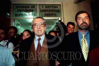 Alejandro Rossi y Juan Ramon de la Fuente rector de la UNAM, realizaron un recorrido por la noche de hoy por las instalaciones de la Escuela Nacional de Enfermeria y Obstetricia que fueron recuperadas por rectoría.