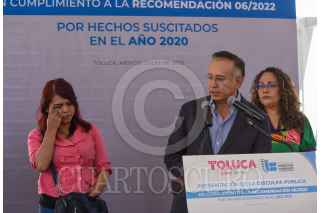 TOLUCA, ESTADO DE MÉXICO, 19JULIO2023.- Stephany Yunuen Paredes recibió una disculpa pública por parte de Raymundo Martínez Carbajal, alcalde de Toluca, en cumplimiento de la recomendación emitida por la CODHEM por el uso excesivo de la fuerza por parte de policías municipales en septiembre de 2020, al ser detenida de manera arbitraria y ocasionarle diversas fracturas y heridas ocasionados por golpes, requiriendo ser hospitalizada y ser sometida a diversas cirugías por estas lesiones. FOTO: CRISANTA ESPINOSA AGUILAR /CUARTOSCURO.COM