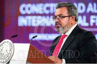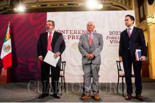 CIUDAD DE MÉXICO, 20JULIO2023.- Andrés Manuel López Obrador, presidente Constitucional de los Estados Unidos Mexicanos en conferencia de prensa matutina en el Salón Tesorería de Palacio Nacional. Lo acompañaron Jorge Nuño Lara, secretario de Infraestructura, Comunicaciones y Transportes; Manuel Eduardo Gómez Parra, director general de Desarrollo Ferroviario Multimodal de la Secretaría de Infraestructura, Comunicaciones y Transportes (SICT) y Jorge Mendoza Sánchez, director general del Banco Nacional de Obras y Servicios Públicos (Banobras). FOTO: PRESIDENCIA/CUARTOSCURO.COM
