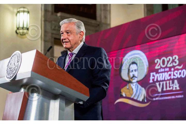 CIUDAD DE MÉXICO, 20JULIO2023.- Andrés Manuel López Obrador, presidente Constitucional de los Estados Unidos Mexicanos en conferencia de prensa matutina en el Salón Tesorería de Palacio Nacional. Lo acompañaron Jorge Nuño Lara, secretario de Infraestructura, Comunicaciones y Transportes; Manuel Eduardo Gómez Parra, director general de Desarrollo Ferroviario Multimodal de la Secretaría de Infraestructura, Comunicaciones y Transportes (SICT) y Jorge Mendoza Sánchez, director general del Banco Nacional de Obras y Servicios Públicos (Banobras). FOTO: PRESIDENCIA/CUARTOSCURO.COM