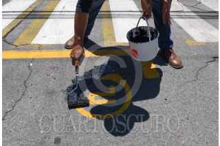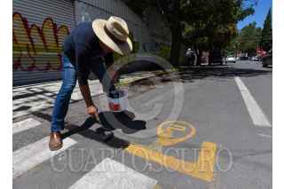TOLUCA, ESTADO DE MÉXICO, 20JULIO2023.- Vecinos de la colonia Francisco Murguía en Toluca se manifestaron en contra de la operación de parquímetros virtuales en la zona, no es el primera vez que vecinos se oponen a esto, y pintaron de negro los cajones que fueron pintados para la operación de los parquímetros. FOTO: CRISANTA ESPINOSA AGUILAR /CUARTOSCURO.COM