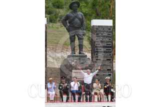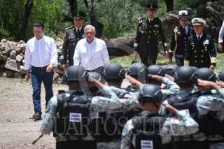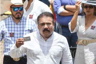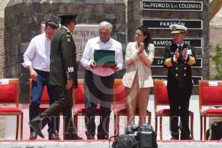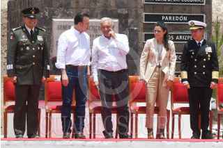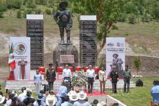 SAN JUAN DEL RÍO, DURANGO, 20JULIO2023.- Andrés Manuel López Obrador, presidente de México, en compañía de Luis Cresencio Sandoval, secretario de la Defensa Nacional y Rafael Ojeda, secretario de Marina, encabezó en la exhacienda "La Coyotada" la ceremonia por el "100 aniversario luctuoso de Francisco Villa". También estuvieron presentes: Esteban Villegas, gobernador del estado de Durango; Luisa María Alcalde, secretaria de Gobernación; Rosa Icela Rodríguez, secretaria de Seguridad y Protección Ciudadana, y Pedro Salmerón, historiador. FOTO: MARIO JASSO/CUARTOSCURO.COM