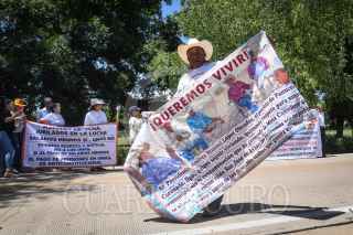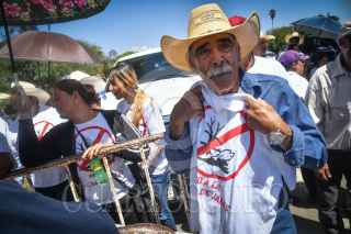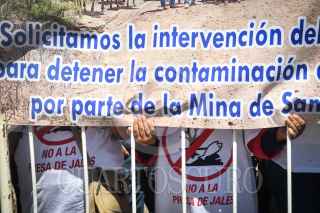 SAN JUAN DEL RÍO, DURANGO, 20JULIO2023.- Ejidatarios de Panuco de Colorado se manifestaron en las inmediaciones de la exhacienda "La Coyotada" para solicitar al gobierno federal su intervención para detener la contaminación se residuos tóxicos por parte de la mina San José de Avino. FOTO: MARIO JASSO/CUARTOSCURO.COM