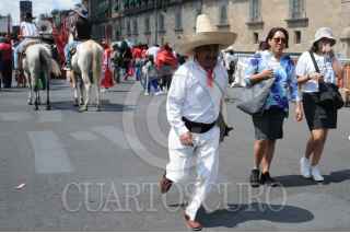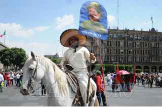 CIUDAD DE MÉXICO, 20JULIO2023.- Integrantes del Frente Popular Francisco Villa realizó un mitin en el Zócalo capitalino para conmemorar los 100 años de la muerte de Pancho Villa. FOTO: DANIEL AUGUSTO /CUARTOSCURO.COM