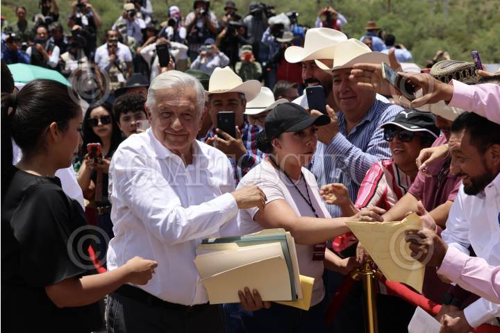 SAN JUAN DEL RÍO, DURANGO, 20JULIO2023.- Andrés Manuel López Obrador, Presidente de México, presidió el Centenario Luctuoso de Francisco Villa en la Ex Hacienda “La Coyotada”. Lo acompañaron Rosa Icela Rodríguez Velázquez, secretaria de Seguridad y Protección Ciudadana; Luis Cresencio Sandoval González, secretario de la Defensa Nacional; Esteban Alejandro Villegas Villarreal, gobernador Constitucional del Estado de Durango; Luisa María Alcalde Luján, secretaria de Gobernación; José Rafael Ojeda, secretario de Marina y Pedro Agustín Salmerón Sanginés. FOTO: PRESIDENCIA/CUARTOSCURO.COM
