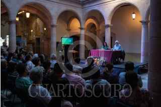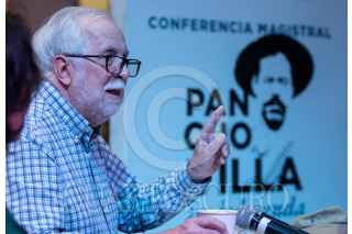 ZACATECAS, ZACATECAS, 20JULIO2023.- Como parte de la actividades del centenario del asesinato de Doroteo Arango, mejor conocido por Pancho Villa; fue realizada la conferencia magistral “Pancho Villa… más leyenda que historia” a cargo del Dr. Javier Garcíadiego Dantán, especialista en Historia de México. Durante la presentación, abarrotada por el público zacatecano, fue realizada patio del Museo Zacatecano, en pleno centro histórico de Zacatecas, lugar de una de las hazañas más importantes de la División del Norte a cargo de Francisco Villa. FOTO: ADOLFO VLADIMIR /CUARTOSCURO.COM