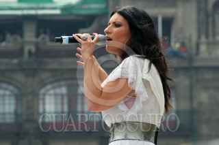 MÉXICO, D.F. 28ABRIL2007.- La cantante Laura Pausini durante el concierto que se llevó a cabo en la plancha del Zócalo organizado por una estación radiofónica. FOTO: PAOLA HIDALGO/CUATOSCURO.COM