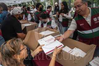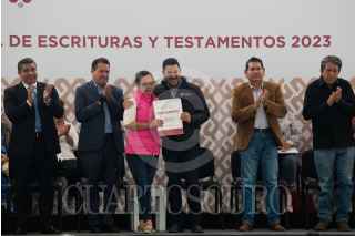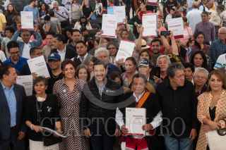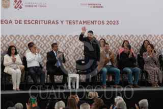 CIUDAD DE MÉXICO, 22JULIO2023.- Martí Batres, jefe de Gobierno, encabezó la entrega Masiva de Escrituras y Testamentos 2023 en la explanada del Monumento a la Revolución. FOTO: MARIO JASSO/CUARTOSCURO.COM