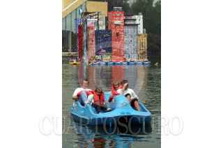 MÉXICO, D.F. 28ABRIL2007.- Previo a la celebración del día del niño se encuentra en el lago menor de Chapultepec la atracción llamada "Chili Moon Town", donde las familias pueden remar alrededor de una maqueta que simula una ciudad. FOTO: PAOLA HIDALGO/CUARTOSCURO.COM