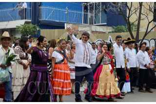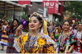 OAXACA, OAXACA, 22JULIO2023.- Treinta delegaciones de las 16 etnias y el pueblo afroamericano de Oaxaca participaron en el segundo desfile de delegaciones que participarán en la octava del Lunes del Cerro. Baile, sones, jarabes, entre otras expresiones culturales inundaron las calles del centro de la capital del estado. FOTO: CAROLINA JIMÉNEZ/CUARTOSCURO.COM
