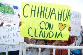 CIUDAD JUÁREZ, CHIHUAHUA, 23JULIO2023.- La aspirante a la coordinación de la defensa de la cuarta transformación Claudia Sheinbaum y su equipo de trabajo realizaron una asamblea informativa en el monumento a Benito Juárez en la fronteriza Ciudad Juárez. FOTO: JUAN ORTEGA SOLÍS/CUARTOSCURO.COM