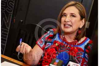 OAXACA, OAXACA, 23JULIO2023.- La aspirante a la candidatura presidencial del Frente Amplio por México, Xóchitl Gálvez Ruiz arribó a la capital de Oaxaca para sostener reuniones con diversos sectores. En conferencia de prensa, reiteró su respeto a las y los aspirantes en relación a un tuit del ex presidente Vicente Fox, en donde criticaba a Claudia Sheinbaum, Adán Augusto, Gerardo Noroña y Marcelo Ebrard. Afirmó que no comparte esa visión y dijo que México es grande por su pluriculturalidad. FOTO: CAROLINA JIMÉNEZ/CUARTOSCURO.COM