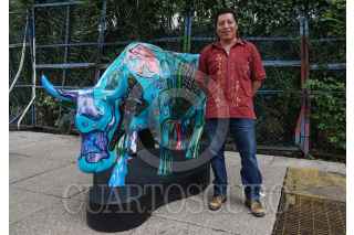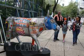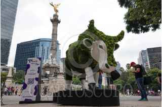 CIUDAD DE MÉXICO, 23JULIO2023.- Capitalinos acudieron a tomarse selfies junto con los diferentes diseños de los toros de Cow Parade 2023, instalados en Paseo de la Reforma. FOTO: GRACIELA LÓPEZ /CUARTOSCURO.COM