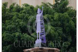 CIUDAD DE MÉXICO, 23JULIO2023.- La escultura Joven de Amajac fue develada está mañana, la cual se encuentra enfrente de la Glorieta de las Mujeres que Luchan en Paseo de la Reforma. FOTO: GRACIELA LÓPEZ /CUARTOSCURO.COM