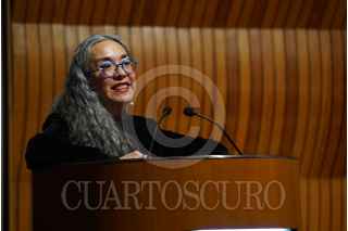 CIUDAD DE MÉXICO, 23JULIO2023.- En su discurso de ingreso a El Colegio Nacional, la escritora Cristina Rivera Garza invocó a los escritores José Revueltas y Gloria Anzaldúa, a los que llamó ancestros que incorporaron cuerpos y experiencias al campo de lo literario. FOTO: CORTESÍA COLEGIO NACIONAL/CUARTOSCURO.COM