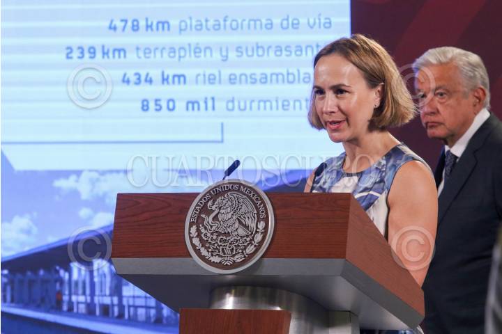 CIUDAD DE MÉXICO, 24JULIO2023.- Andrés Manuel López Obrador, Presidente de México, habló sobre el Tren Maya y Pemex durante la mañanera. Lo acompañaron Mauricio Vila Dosal, gobernador de Yucatán; Javier May Rodríguez, director general de Fondo Nacional de Fomento al Turismo (Fonatur); Diego Prieto Hernández, director general del Instituto Nacional de Antropología e Historia (INAH); Ricardo Sheffield Padilla, titular de la Procurador Federal del Consumidor(Profeco); Guadalupe Phillips Margain, directora general de ICA; Blas Andrés Núñez Jordán, jefe del Centro Coordinador de Operaciones del Tren Maya. FOTO: MOISÉS PABLO/CUARTOSCURO.COM