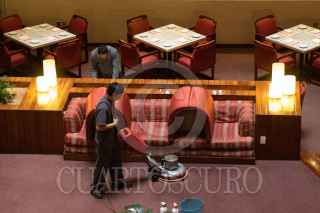CIUDAD DE MÉXICO, 24JULIO2023.- Trabajadores aspiran y limpian uno de los pisos en un hotel de Reforma. FOTO: MOISÉS PABLO/CUARTOSCURO.COM