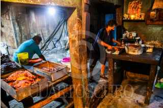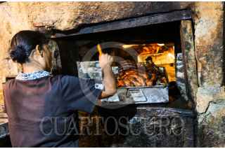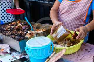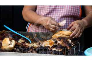 ACAPULCO, GUERRERO, 24JULIO2023 .- El relleno de puerco, es uno de los platillos más tradicionales de la costa de Guerrero, su origen es de Filipinas y qué llegó con los navegantes de la Nao de China ( Galeón de Manila ) al puerto de Acapulco, en el barrio de El Hueso existe un horno, en dónde "relleneras" ( mujeres qué cocinan relleno) lleven el preparado en charolas, en dónde a fuego lento se cocina durante 8 horas, y apartir de las 4 de la mañana se recoge, en dónde más tarde se vende en puestos en callejones de los barrios históricos de Acapulco, principalmente los días domingos. FOTO: CARLOS CARBAJAL/CUARTOSCURO.COM