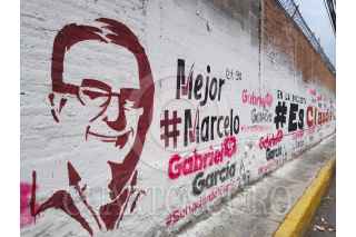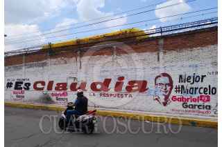CIUDAD DE MÉXICO, 26JUKUO2023.- Rótulos en apoyo a las corcholatas Marcelo Ebrard, Ricardo Monreal y Claudia Sheinbaum, y al senador Gabriel García en una barda en la alcaldía Iztapalapa. FOTO: GRACIELA LÓPEZ /CUARTOSCURO.COM