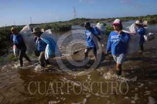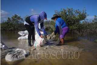 PROGRESO, YUCATÁN, 26JULIO2023.- De acuerdo a la Organización de las Naciones Unidas para la Educación, la Ciencia y la Cultura (UNESCO) el 26 de julio es considerado como el “Día internacional de defensa del ecosistema de manglar” por ser considerado que los manglares son un ecosistema único, especial y vulnerable. En Yucatán existe una agrupación de mujeres conocidas mundialmente como “Las Chelemeras”, desde el año 2010 realizan la incansable labor de proteger y restaurar el manglar de la costa yucateca proyecto que actualmente desarrollan en el municipio de Chelem y Puerto de Progreso. En fechas pasadas fueron reconocidas por la BOAT International y Blue Marine Foundation otorgándoles el premio internacional en la categoría Héroes Locales, de los premios Ocean 2023. El grupo actualmente lo integran unas 20 mujeres de entre 30 y 80 años de edad, para Keila Raquel Vázquez Lira el ecosistema de manglar tiene más importancia que un bosque tropical “es hogar de muchas aves y especies marinas, un pulmón de vida, además de que sirve como contención para huracanes y tormentas”, señaló. FOTO: MARTÌN ZETINA/CUARTOSCURO.COM