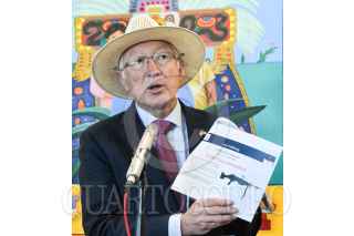 CIUDAD DE MÉXICO, 27JULIO2023.- Ken Salazar, embajador de Estados Unidos en México, ofreció conferencia de prensa en la que abordó la reunión y cooperación bilateral en materia de seguridad liderada por la asesora de Seguridad Nacional Liz Sherwood-Randall, con funcionarios mexicanos, incluyendo la lucha contra el tráfico ilegal de fentanilo y armas. FOTO: MARIO JASSO/CUARTOSCURO.COM