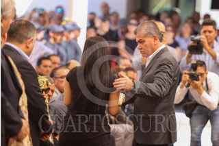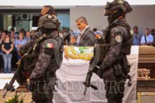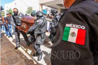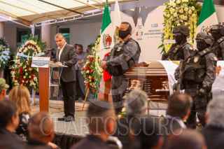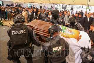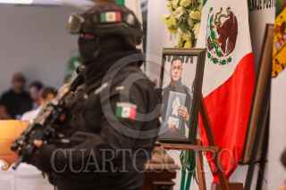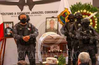 SALTILLO, COAHUILA, 27JULIO2023.- Rinden homenaje de cuerpo presente al oficial caído, Giovanni Jahaziel Coronado Cortés, quien falleciera a causa de los diversos enfrentamientos que se han suscitado en el estado de Coahuila, principalmente en la zona conocida como la ribereña carretera que conecta con Coahuila y Nuevo León. El Gobernador Miguel Ángel Riquelme Solis acudió esta mañana a las instalaciones de la policia estatal para homenajear al fallecido y darle el pésame a sus familiares. FOTO: ALEJANDRO RODRÍGUEZ/CUARTOSCURO.COM