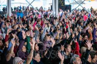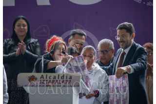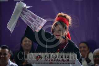 CIUDAD DE MÉXICO, 27JULIO2023.- Clara Brugada, alcaldesa de Iztapalapa, y Martí Batres, Jefe de Gobierno, encabezaron la entrega de los vales Mercomuna Ingreso Social de Emergencia a habitantes de la demarcación iztapalapense. FOTO: GOBIERNO DE LA CIUDAD DE MÉXICO/CUARTOSCURO.COM