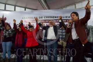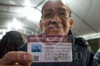 CIUDAD DE MÉXICO, 28JULIO2023.- Mario Delgado, presidente de Morena y Sebastián Ramírez, presidente estatal de Morena, encabezaron el arranque de la campaña de credencialización de los Defensores de la Cuarta Transformación en la Plaza Manuel Tolsá. FOTO: ROGELIO MORALES /CUARTOSCURO.COM