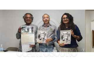 FRESNILLO, ZACATECAS, 29JULIO2023.- Pedro Valtierra, director de Cuartoscuro; Rubén Rivera, director de la galería el Tunal y Ana Paula Gómez, coordinadora de El Tunal, presentaron el Concurso de Fotografía EN Fresnillo 2023 “¡Aquí Nomás!”. Pedro Valtierra compartió los detalles de la convocatoria con la prensa local y dijo que los fresnillenses tienen hasta el 30 de noviembre de 2023 para participar. CORTESÍA/CUARTOSCURO.COM