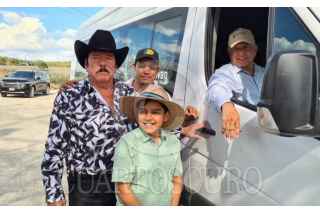 MUNICIPIO LA CHINA, NUEVO LEÓN, 30JULIO2023.- El cantante de corridos norteños Lalo Mora presumió que el Presidente de México, Andrés Manuel López Obrador, aterrizó en los terrenos de rancho, ahí el cantante agradeció al tabasqueño las obras del acueducto Cuchillo II y destacó sus beneficios. FOTO: REDES SOCIALES DE LALO MORA/CUARTOSCURO.COM