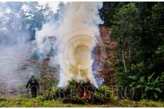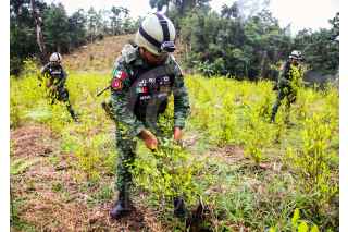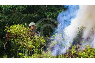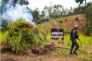 ACAPULCO, GUERRERO, 30JULIO2023.- Soldados del ejército mexicano, localizaron tres plantios de hoja coca en el punto conocido como Cerro Azúl, en la parte alta de la Sierra de Atoyac; a si como también hubicaron un laboratorio clandestino para procesar la hoja coca, luego de la localización las matas de hoja de coca fueron arrancadas e incineradas, mandos del ejército mexicano informaron que en lo que va del año 2023 se han localizado 93 plantios en la zona de la Sierra de Guerrero. FOTO: CARLOS CARBAJAL/CUARTOSCURO.COM
