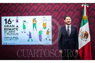 CIUDAD DE MÉXICO. 31JULIO2023.- Martí Batres Guadarrama, jefe del Gobierno de la Ciudad, durante su conferencia de prensa, anuncio la 16 Edición del Gran Remate de Libros y Películas en el Monumento a la Revolución. Lo acompaño Paloma Sáiz y se realizó en el Palacio del Ayuntamiento. FOTO: GOBIERNO DE LA CIUDAD/CUARTOSCURO.COM
