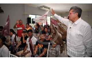 ZIHUATANEJO, GUERRERO, 31JULIO2023.- Ricardo Monreal, aspirante a la coordinación nacional de los comités de defensa de la cuarta transformación de Morena, durante la asamblea informativa de hoy lunes en el municipio de Zihuatanejo. FOTO: RVR ESPECIAL/CUARTOSCURO.COM