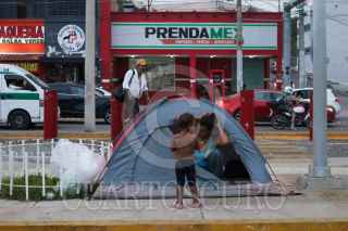 TUXTLA GUTIÉRREZ, CHIAPAS, 31JULIO2023.- Migrantes de las distintas nacionalidades que no cuentan con ningún documento migratoria para avanzar acampan frente a una terminal de autobuses. Llegaron hasta aquí porque el Instituto Nacional de Migración los "abandonó", luego de trasladarlos en autobuses desde el Río Suchiate. FOTO: DAMIAN SÁNCHEZ/CUARTOSCURO.COM