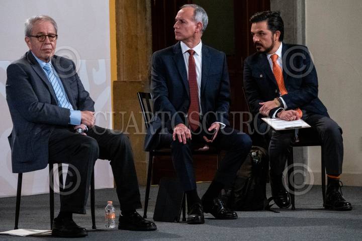CIUDAD DE MÉXICO, 01AGOSTO2023.- Andrés Manuel López Obrador, presidente de México, encabezó la conferencia de prensa matutina desde Palacio Nacional en compañía del gabinete de salud: Jorge Alcocer, secretario de Salud; Zoé Robledo, director general del Instituto Mexicano del Seguro Social (IMSS), y Hugo López-Gatell, subsecretario de Prevención y Promoción a la Salud. FOTO: GALO CAÑAS/CUARTOSCURO.COM