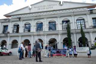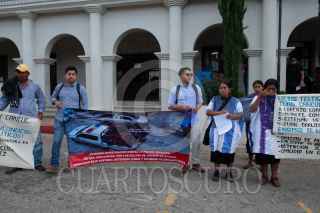 SAN CRISTÓBAL DE LAS CASAS, CHIAPAS, 01AGOSTO2023.- A 14 meses de la detención arbitraria de los compañeros tseltales; Manuel Santiz Cruz, Martín Pérez Domínguez, Agustín Pérez Velasco, Agustín Pérez Domínguez y Juan Velasco Aguilar, quienes aún se encuentran presos, familiares e integrantes de la organización Pueblo Creyente y MODEVITE, realizaron una denuncia pública en las inmediaciones del Palacio de Justicia de Los Altos de Chiapas, lugar en que se celebraría la Audiencia de Apelación de los compañeros, la cual fue cancelada ya que uno de los magistrados se encuentra aún de vacaciones, a pesar de que la fecha de audiencia lleva semanas agendada en los juzgados. Esta y otras incoherencias en el caso fueron denunciadas hoy frente a medios de comunicación y organizaciones defensoras de derechos humanos. Las familias exigen un trato digno y justicia. FOTO: ISABEL MATEOS /CUARTOSCURO.COM